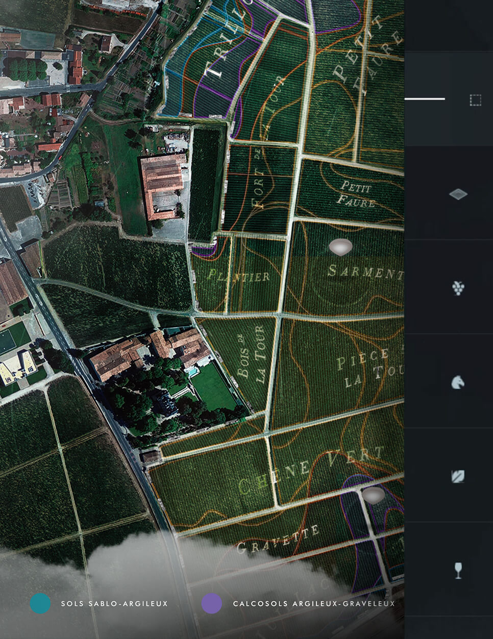 We wanted innovation to meet craftmanship. Expertise on 80,000 different wines from more than 92 hectares of land is disseminated through an interactive map of the Pauillac region.